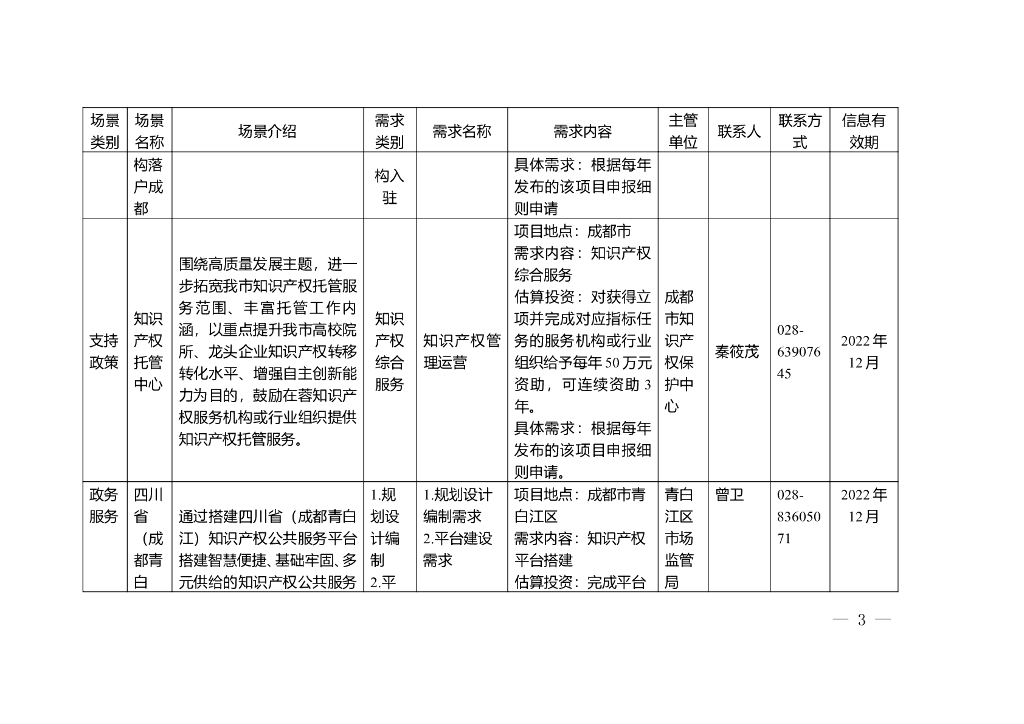 公园城市示范区“十四五”知识产权保护和运用规划机会清单.doc