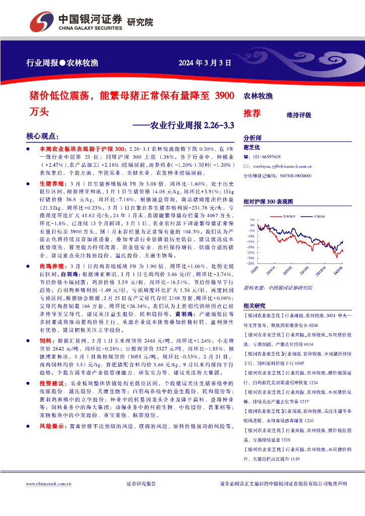 中国银河:农业行业周报2.26-3.3:猪价低位震荡,能繁母猪正常保有量降至3900万头.pdf