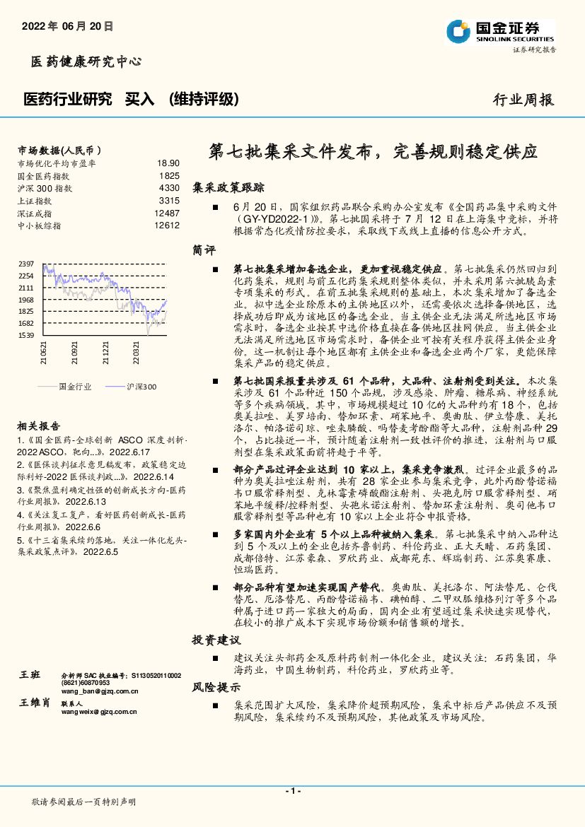 国金证券:医药行业研究:第七批集采文件发布,完善规则稳定供应.pdf
