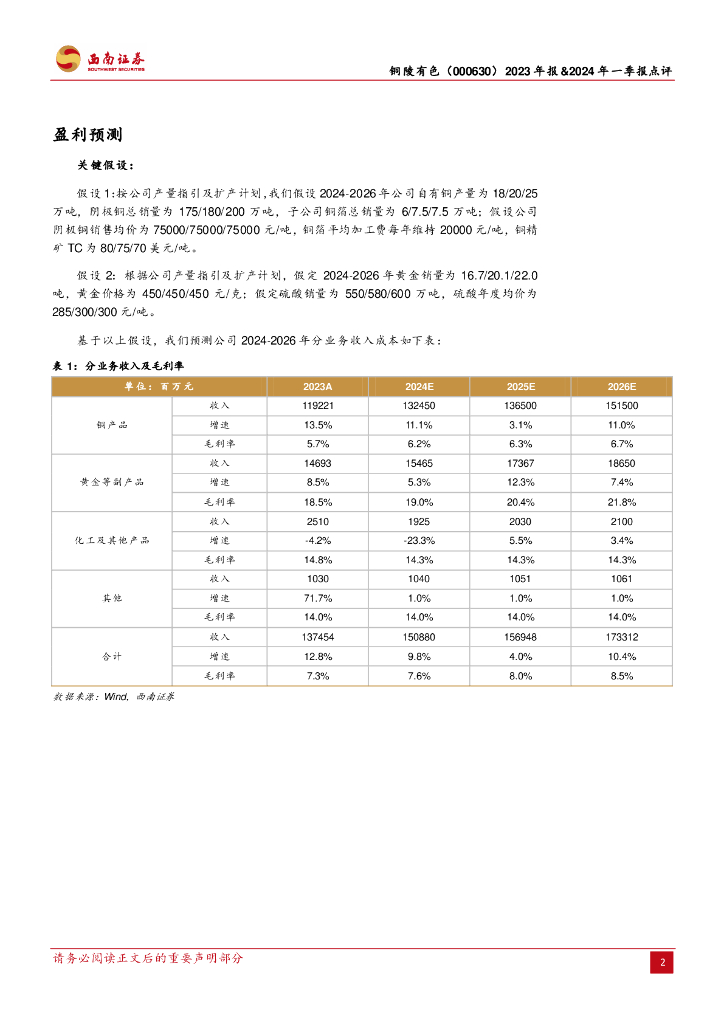 西南证券:铜陵有色(000630)-24Q1业绩符合预期,资源自给率稳步提升.pdf