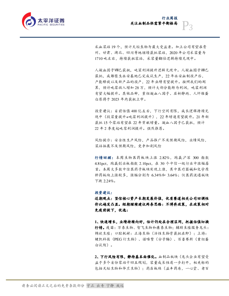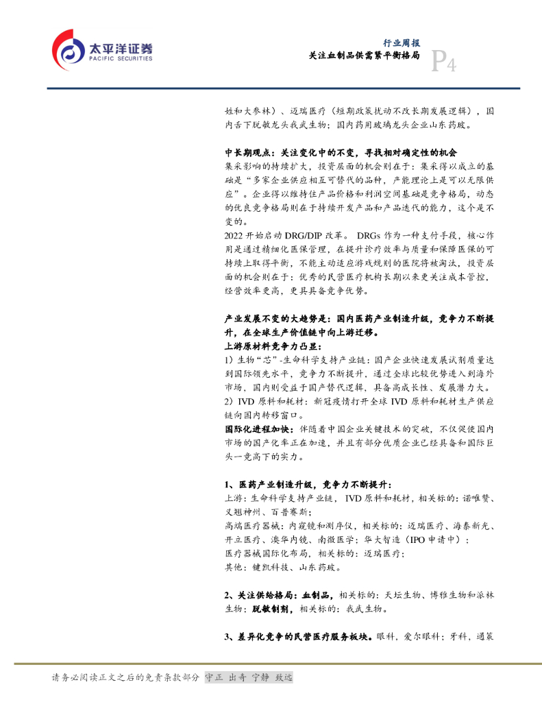 太平洋证券:医药生物:关注血制品供需紧平衡格局.pdf
