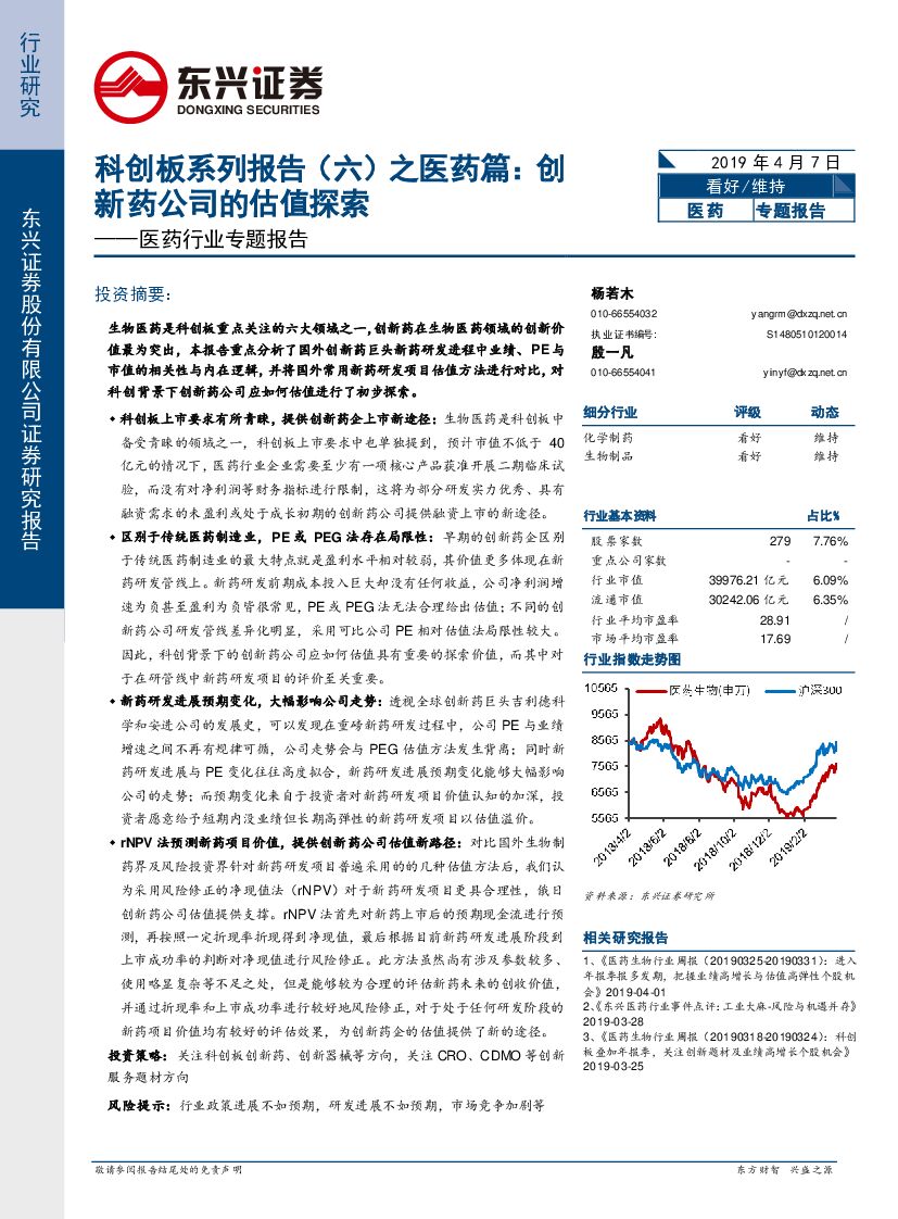 东兴证券:医药行业专题报告:科创板系列报告(六)之医药篇:创新药公司的估值探索.pdf