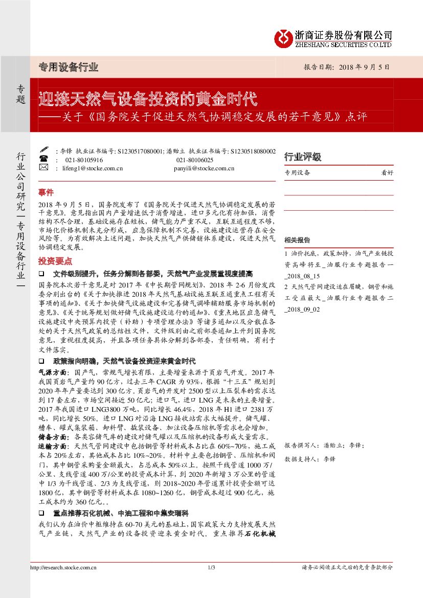 浙商证券:专用设备行业:关于《国务院关于促进天然气协调稳定发展的若干意见》点评-迎接天然气设备投资的黄金时代.pdf