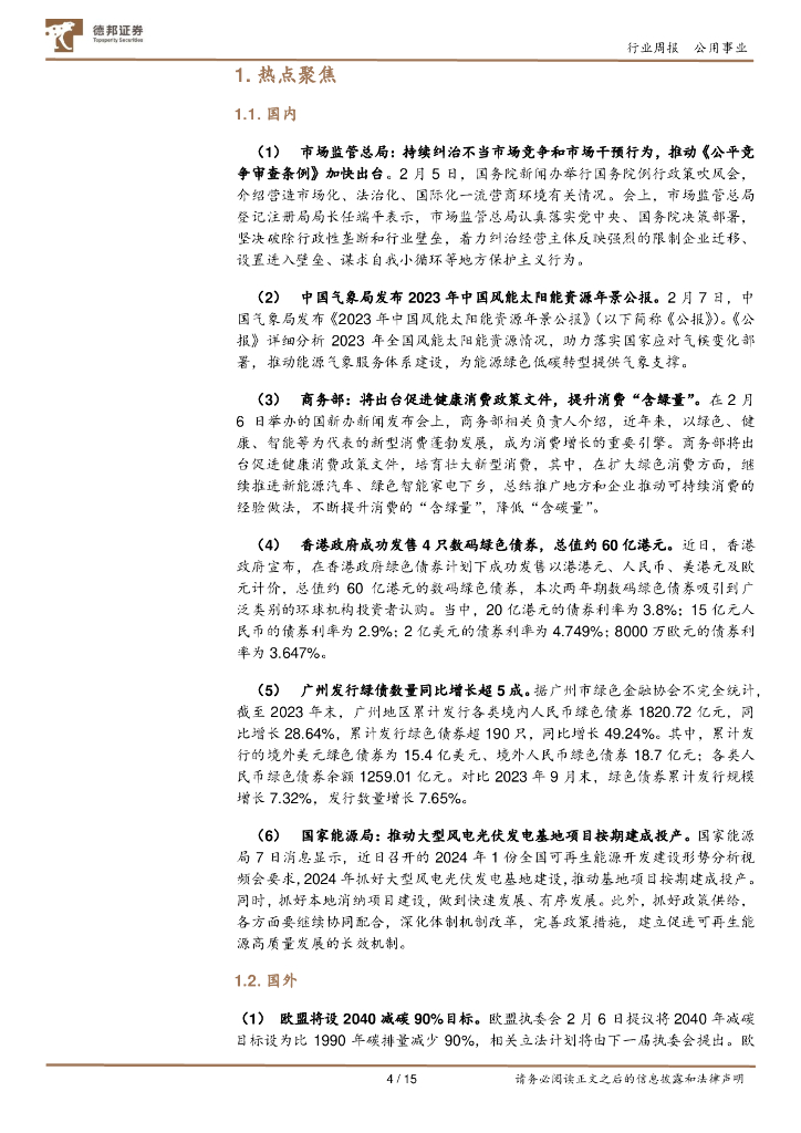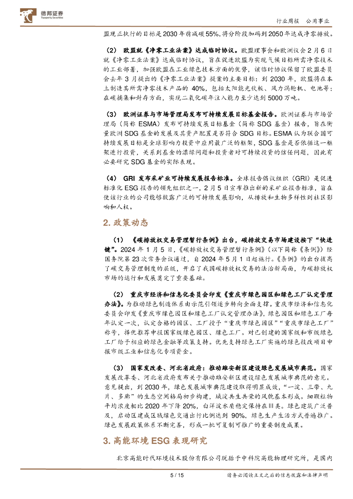 德邦证券:公用事业行业ESG周报:纠治不当市场竞争和市场干预行为,推动《公平竞争审查条例》出台;欧盟将设2040减碳90%目标.pdf