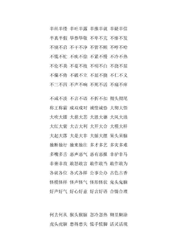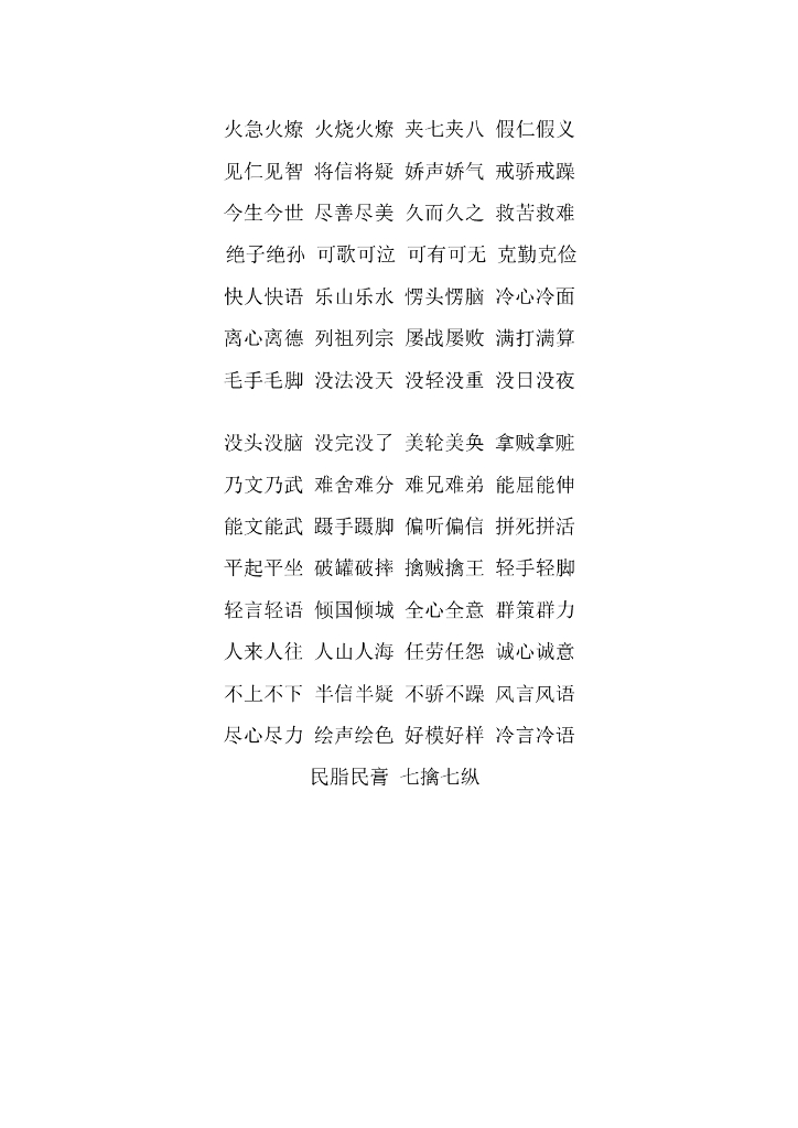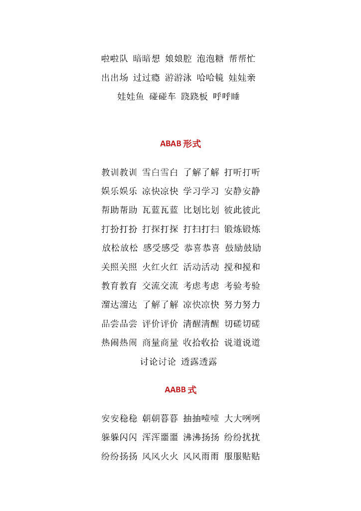 小学语文必备词汇:AAB、ABB、AABB、ABAB、ABAC等.doc