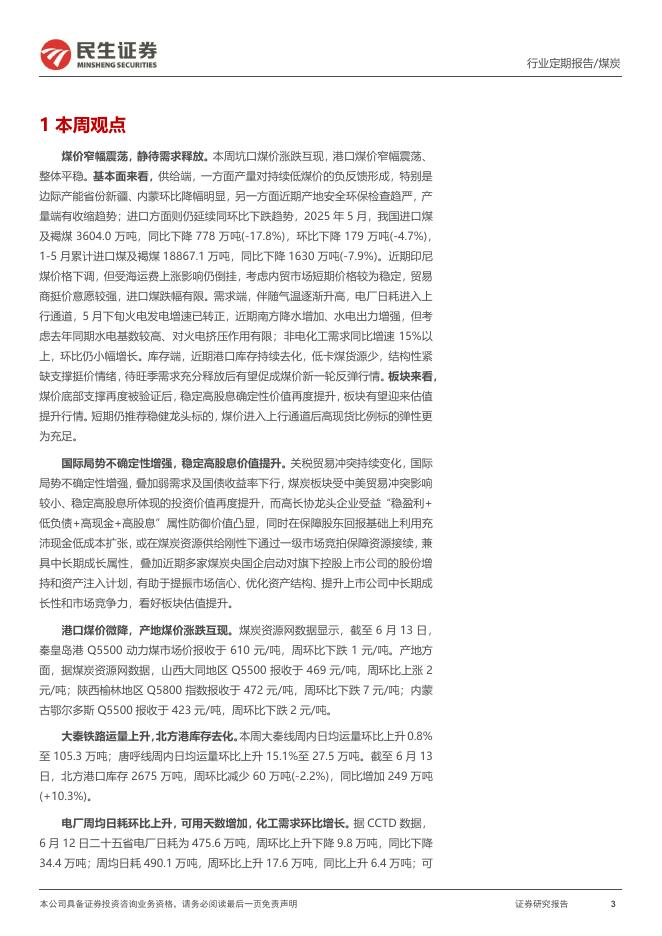 民生证券:煤炭周报:煤价窄幅震荡,静待需求释放.pdf