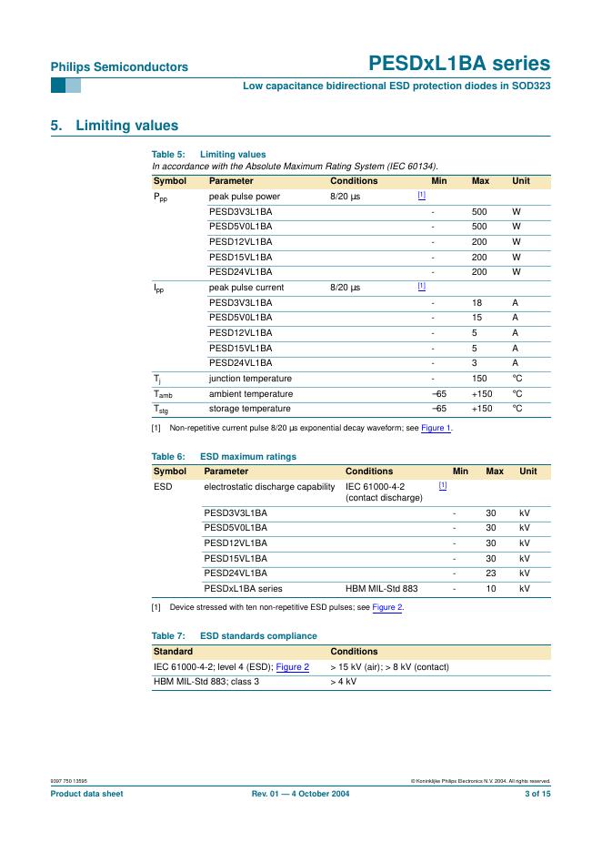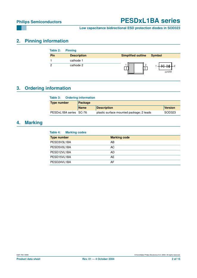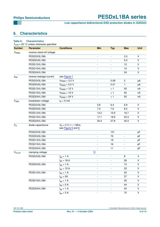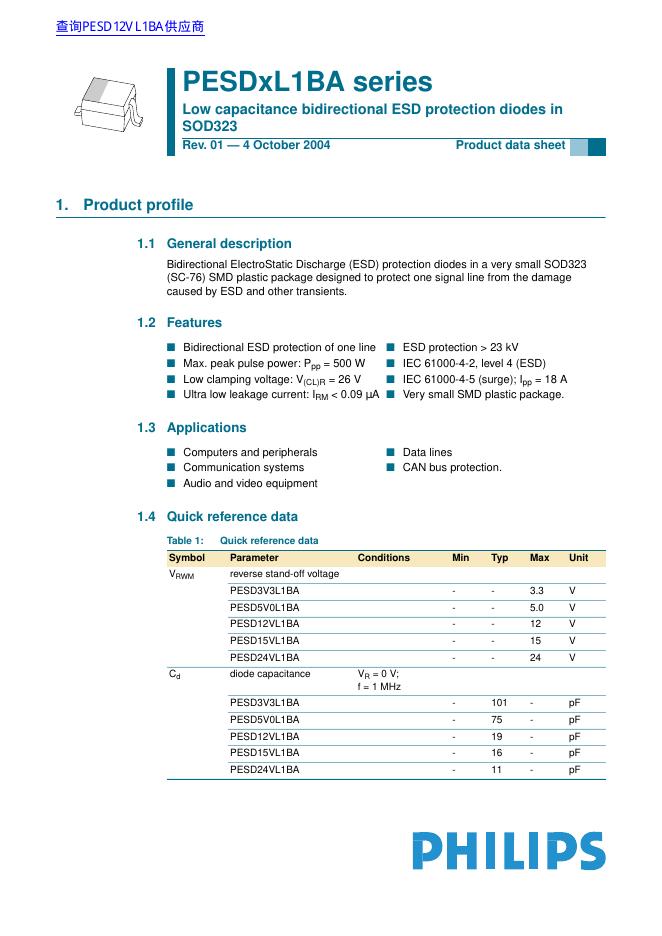 PHILIPS PESDxL1BA series Low capacitance bidirectional ESD protection diodes in SOD323 数据手册.pdf