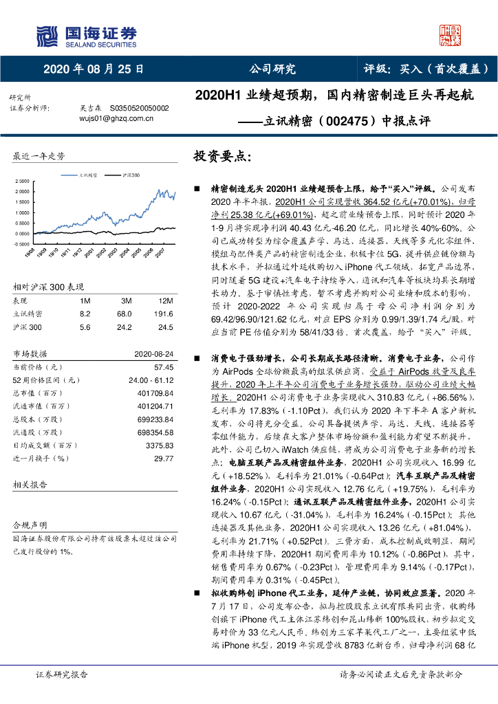 国海证券:立讯精密(002475)-中报点评:2020H1业绩超预期,国内精密制造巨头再起航.pdf