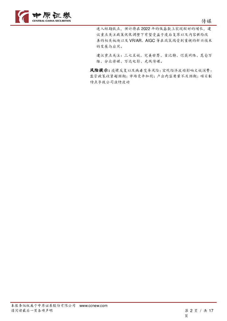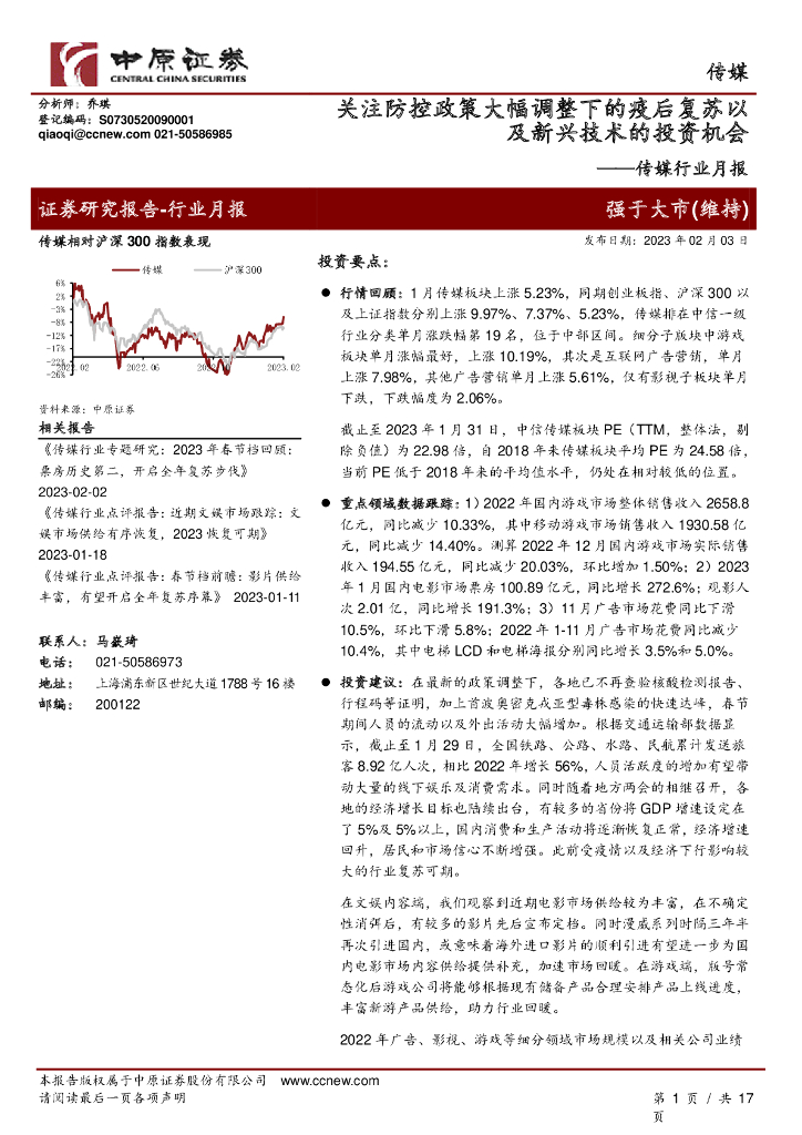 中原证券:传媒行业月报:关注防控政策大幅调整下的疫后复苏以及新兴技术的投资机会.pdf