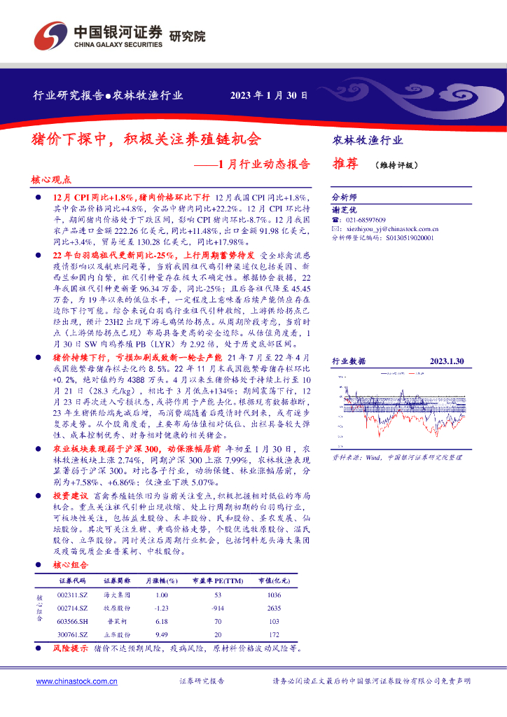 中国银河:农林牧渔行业1月行业动态报告:猪价下探中,积极关注养殖链机会.pdf