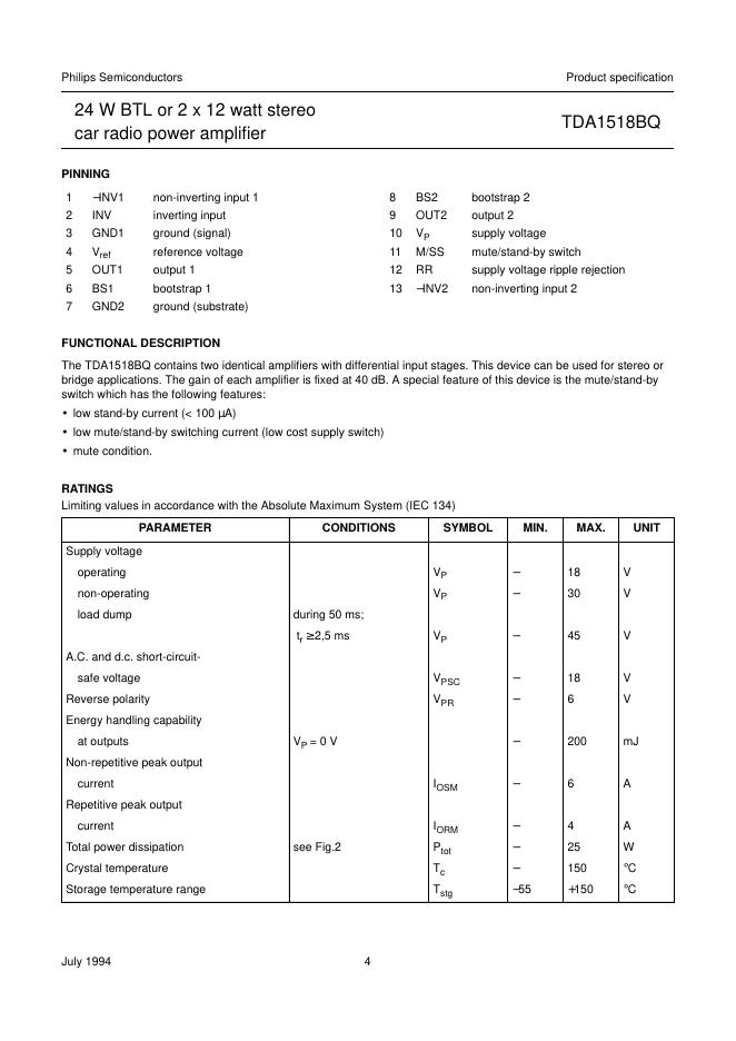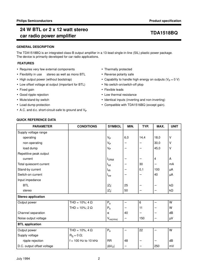 飞利浦 TDA1518BQ 数据手册.pdf