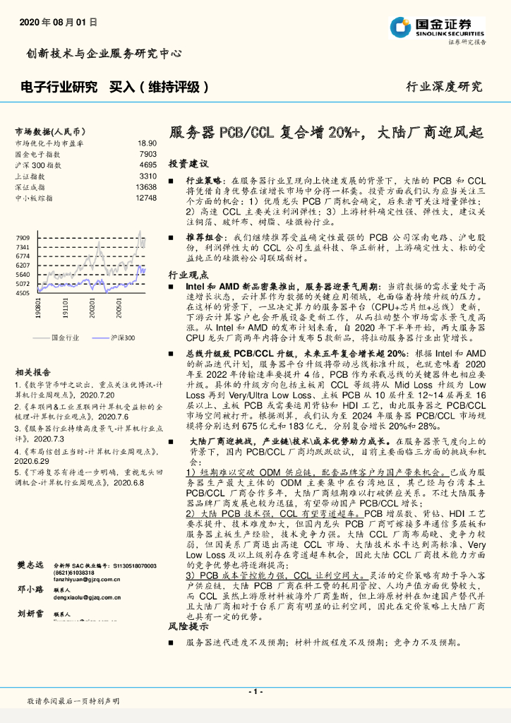 国金证券:电子行业研究:服务器PCB/CCL复合增20%+,大陆厂商迎风起.pdf
