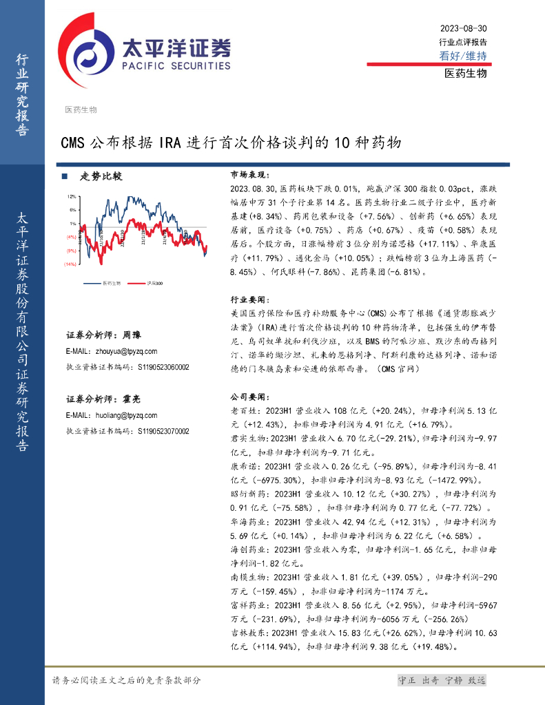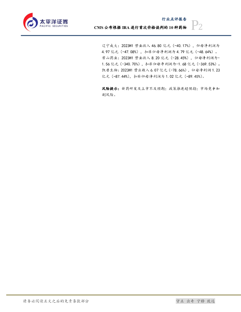 太平洋证券:医药生物:CMS公布根据IRA进行首次价格谈判的10种药物.pdf