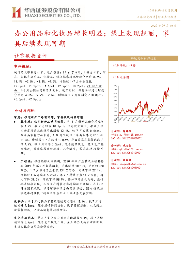 华西证券:社零数据点评:办公用品和化妆品增长明显;线上表现靓丽,家具后续表现可期.pdf
