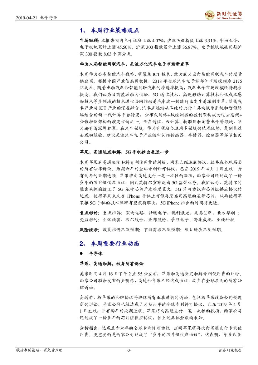 新时代证券:电子行业研究周报:华为入局智能网联汽车,苹果高通和解剑指5G.pdf