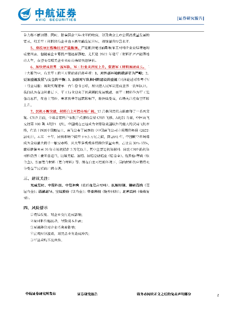 中航证券:军工材料月报:把握底部机会,2023蓄势待发.pdf