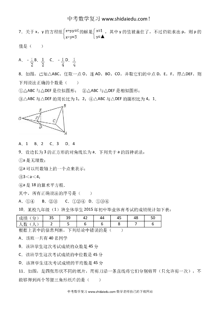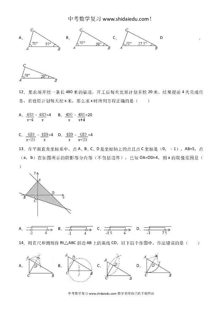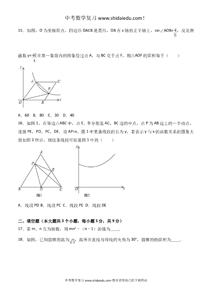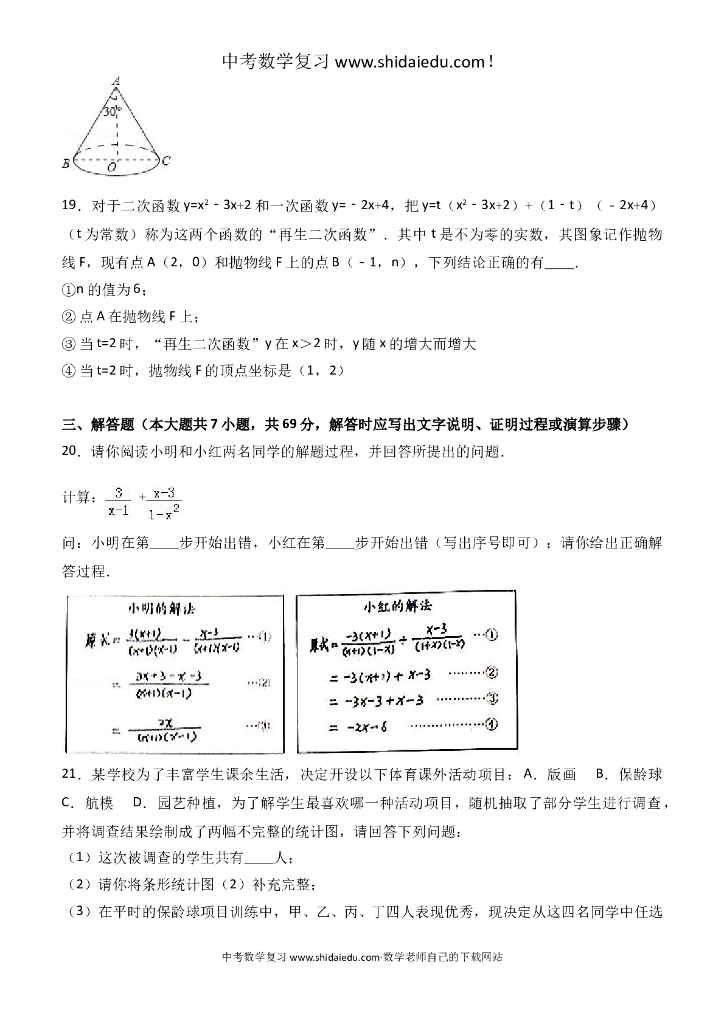 河北省石家庄市中考数学一模试卷--附答案解析.doc