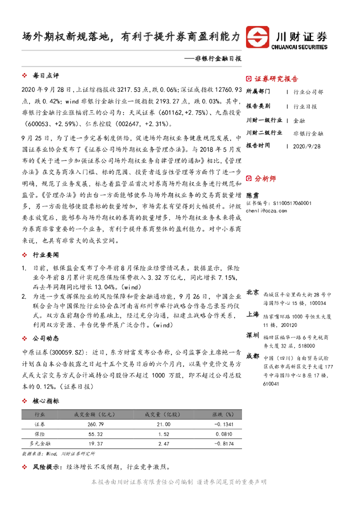 川财证券:非银行金融日报:场外期权新规落地,有利于提升券商盈利能力.pdf