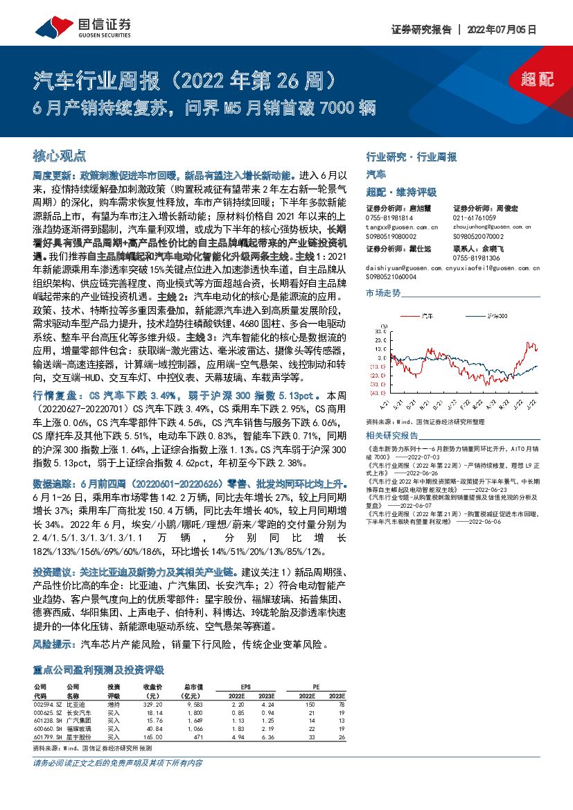 国信证券:汽车行业周报(2022年第26周):6月产销持续复苏,问界M5月销首破7000辆.pdf