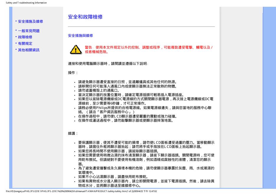 Philips LCD Monitor Electronic 231EI User’s Manual.pdf