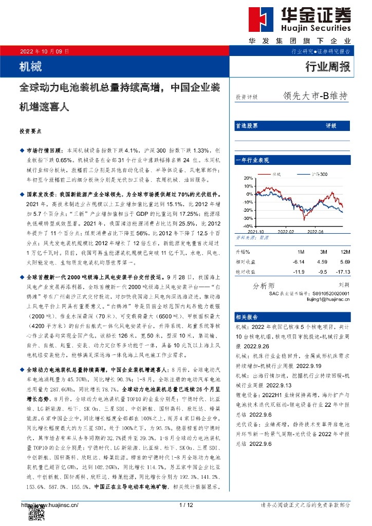 华金证券:机械行业周报:全球动力电池装机总量持续高增,中国企业装机增速喜人.pdf
