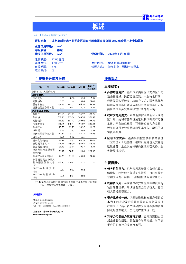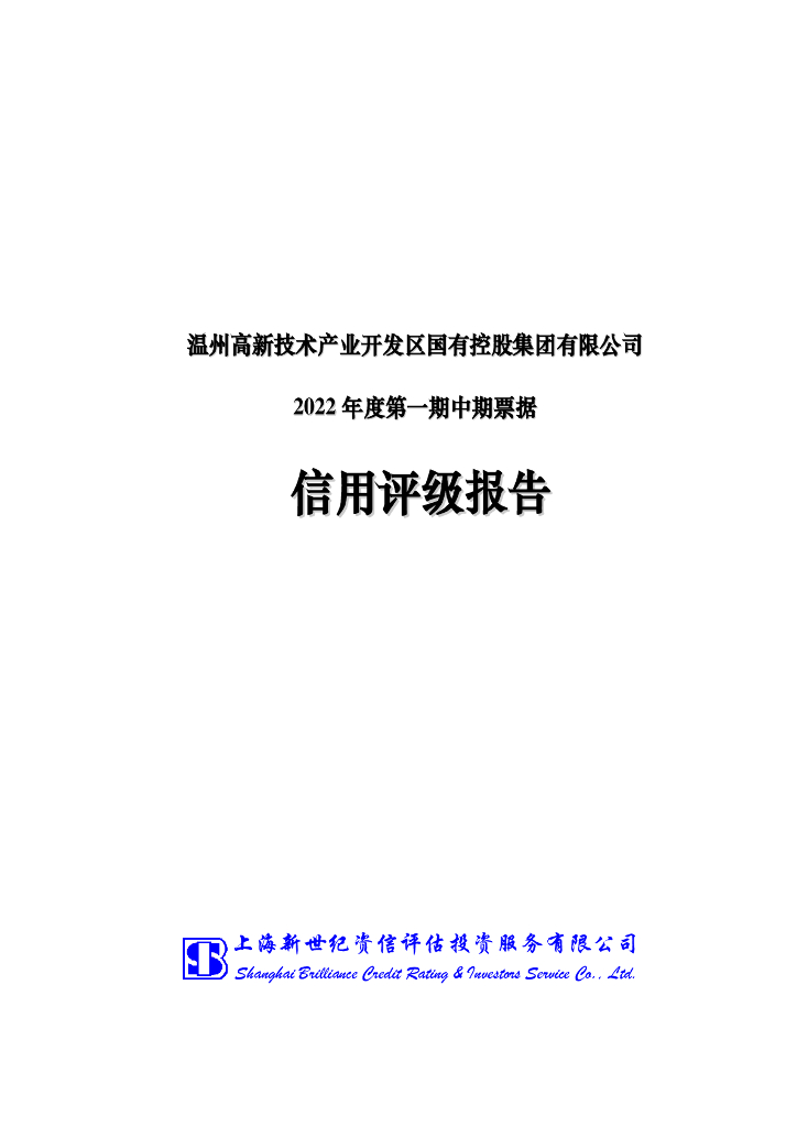 新世纪:温州高新技术产业开发区国有控股集团有限公司2022年度第一期中期票据评级报告.pdf