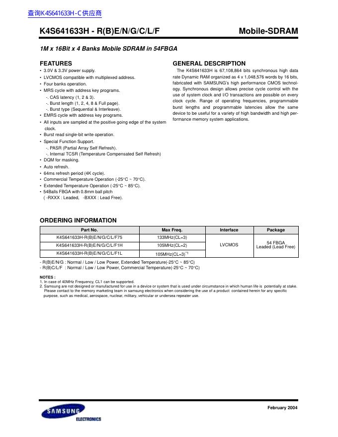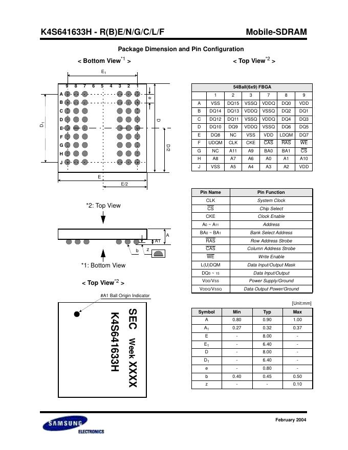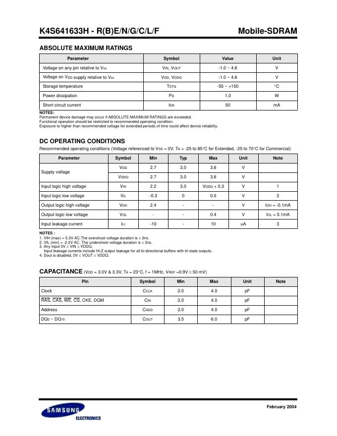 SAMSUNG K4S641633H - R(B)E/N/G/C/L/F February 2004 Mobile-SDRAM 数据手册.pdf