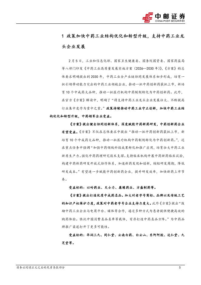 中邮证券:医药生物行业报告:政策加快中药工业结构优化和转型升级,支持中药工业龙头企业发展.pdf