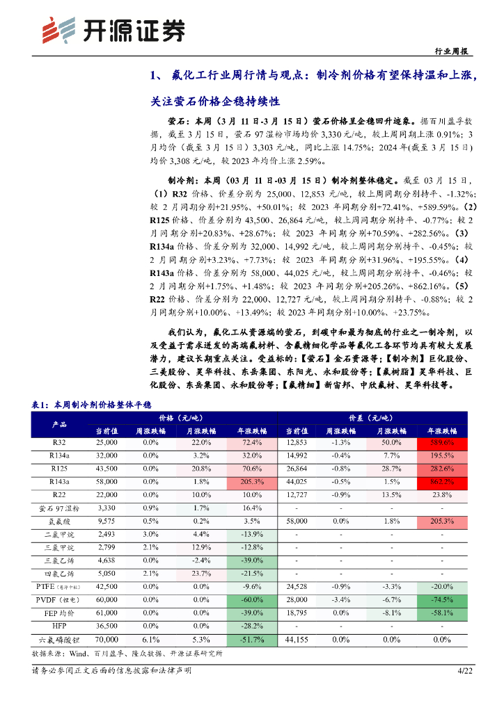 开源证券:氟化工行业周报:制冷剂前期涨幅不断消化,后市有望保持温和上涨.pdf