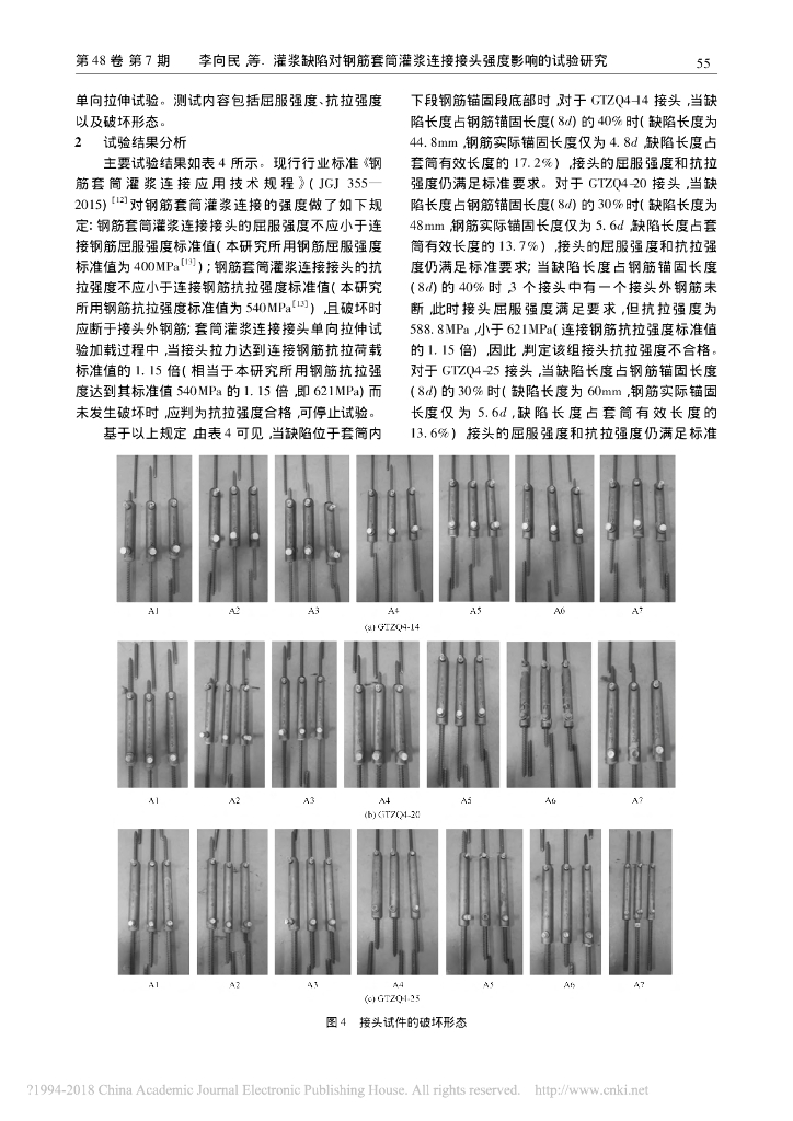 灌浆缺陷对钢筋套筒灌浆连接接头强度影响.pdf