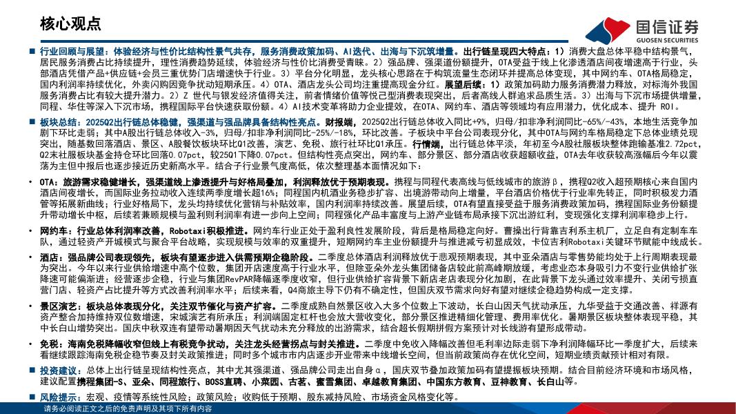 国信证券:社会服务行业财报总结系列之出行链暨9月投资策略:板块结构性景气,双节叠加政策红利提振预期