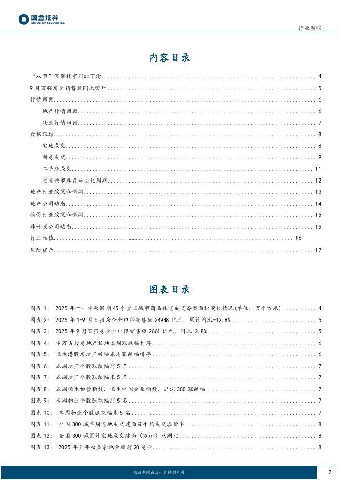 国金证券:房地产行业研究:“双节”假期楼市同比下滑,9月百强房企销售额同比回升.pdf