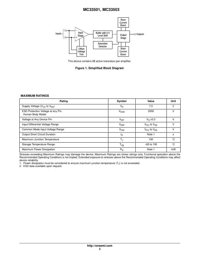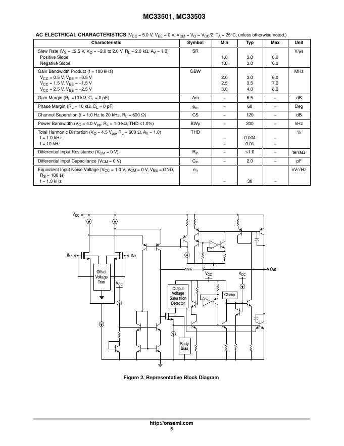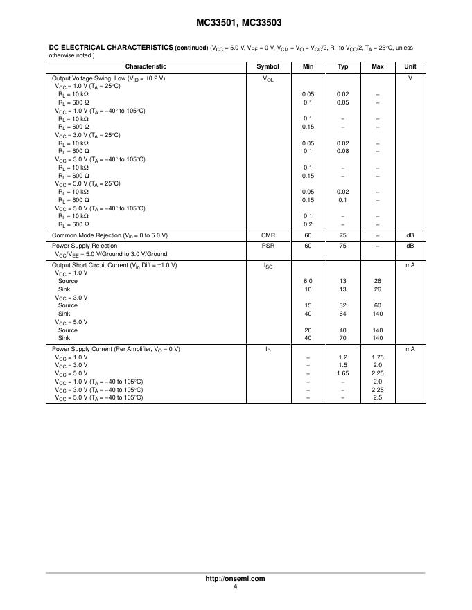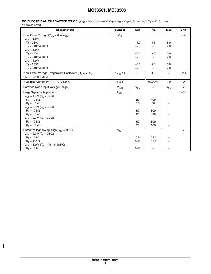 ON SEMICONDUCTOR MC33501, MC33503 1.0 V, Rail−to−Rail, Single Operational Amplifiers 数据手册.pdf