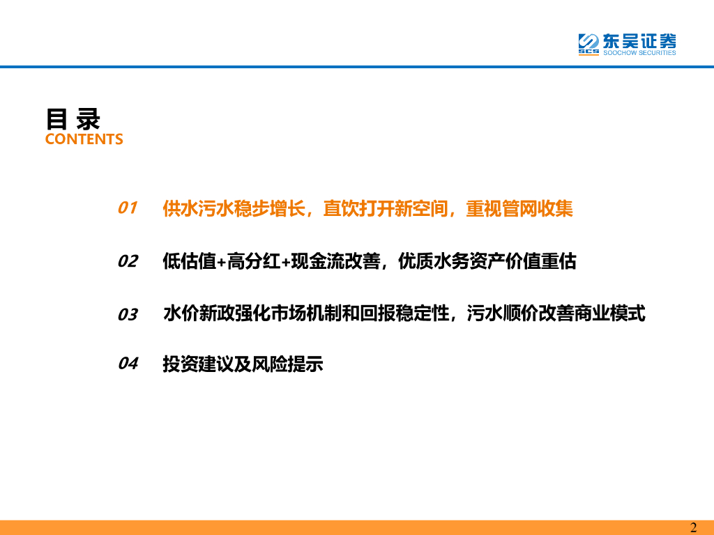 东吴证券:环保工程及服务行业深度:低估值+高分红+水价改革,关注优质运营资产价值重估.pdf