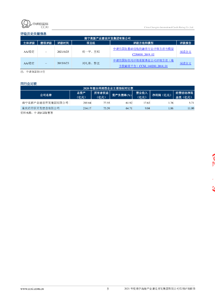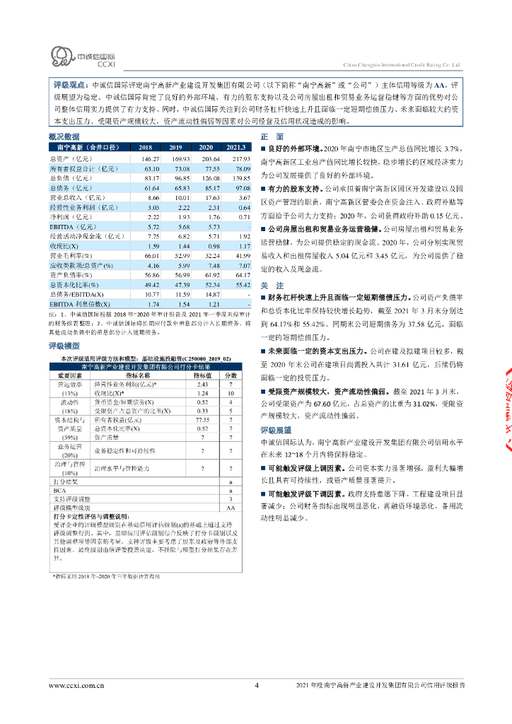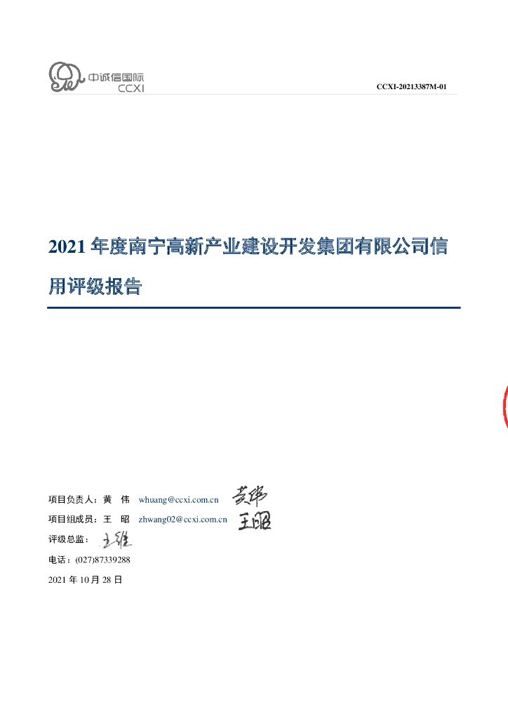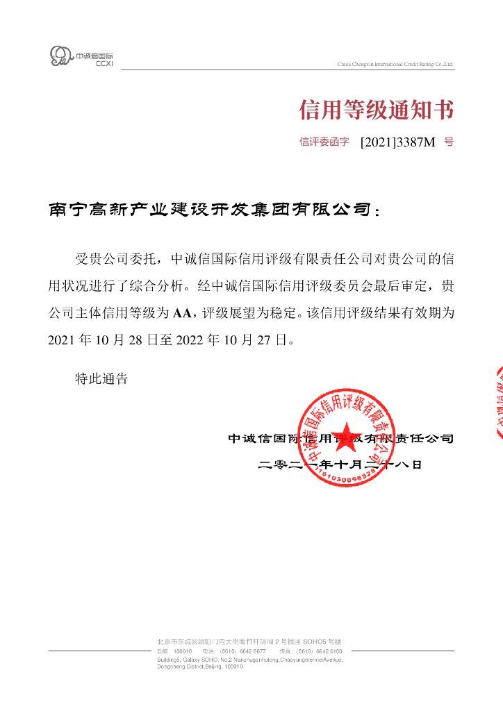中诚信:2021年度南宁高新产业建设开发集团有限公司信用评级报告.pdf