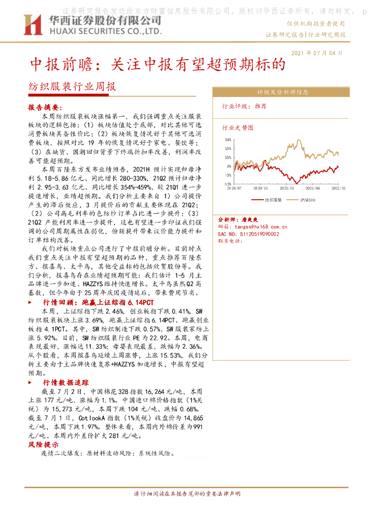 华西证券:纺织服装行业周报:中报前瞻:关注中报有望超预期标的.pdf