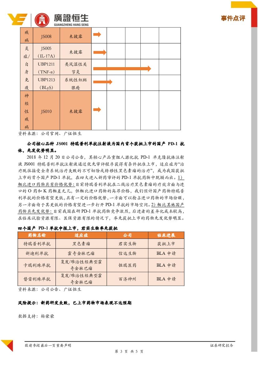 广证恒生证券研究所:【医药点评】君实生物:PD-1才摘桂冠,“三+H”又拔头筹.pdf