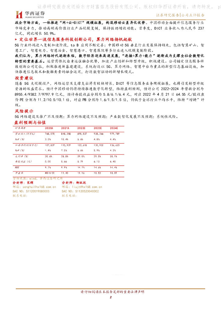 华西证券:中国移动(600941)-业绩平稳增长,数字化转型有望加速.pdf