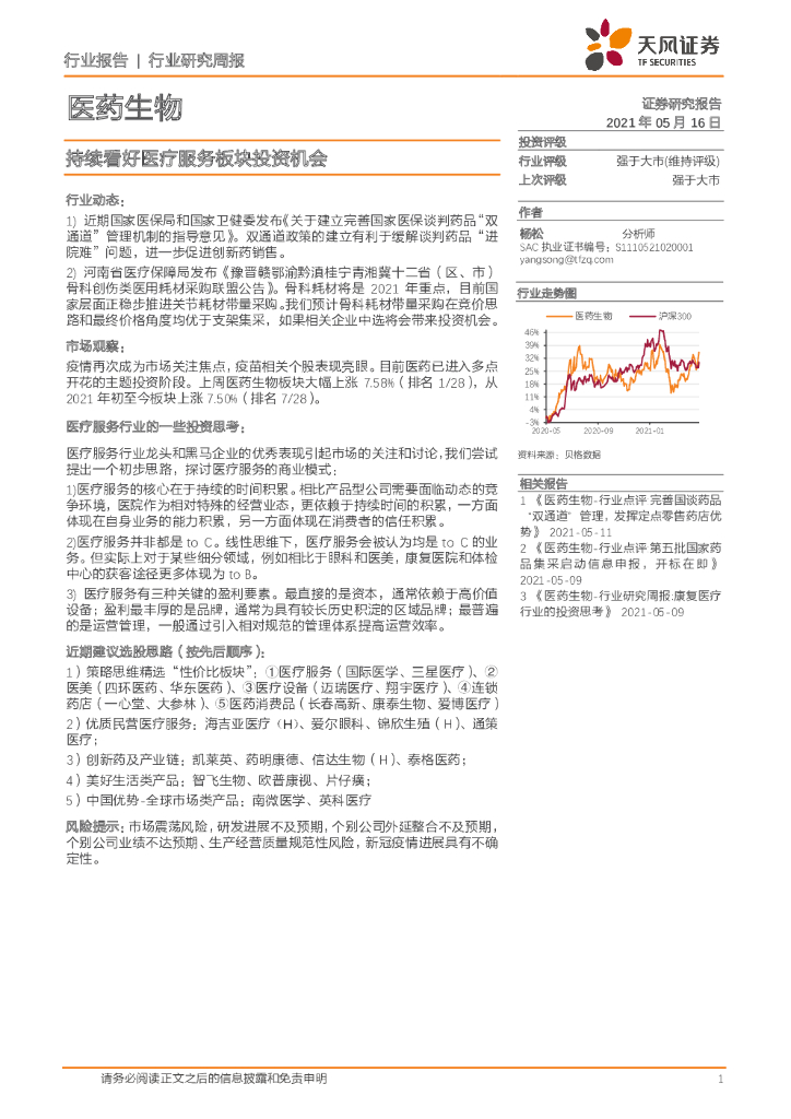 天风证券:医药生物行业研究周报:持续看好医疗服务板块投资机会.pdf