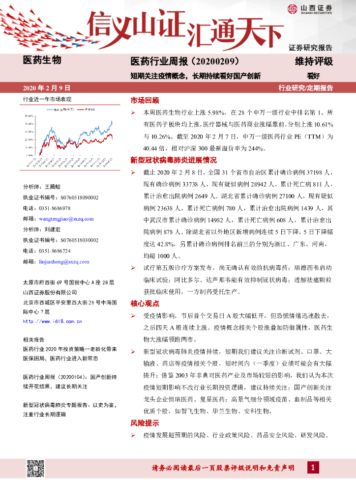 山西证券:医药行业周报:短期关注疫情概念,长期持续看好国产创新.pdf