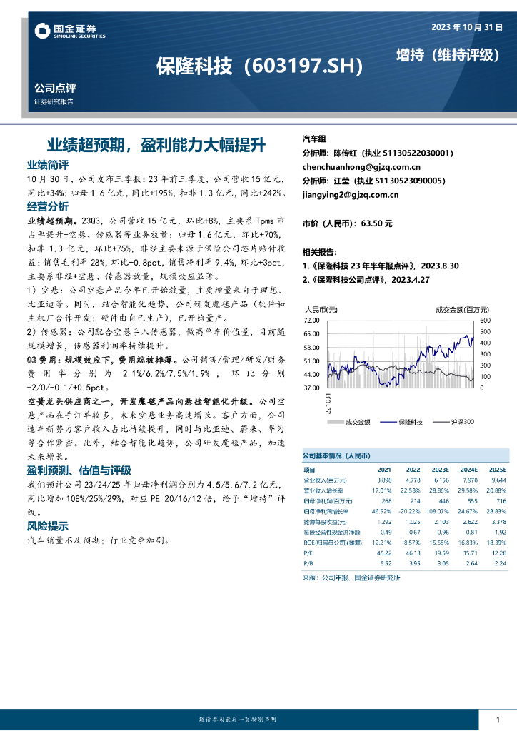 国金证券:保隆科技(603197)-业绩超预期,盈利能力大幅提升.pdf