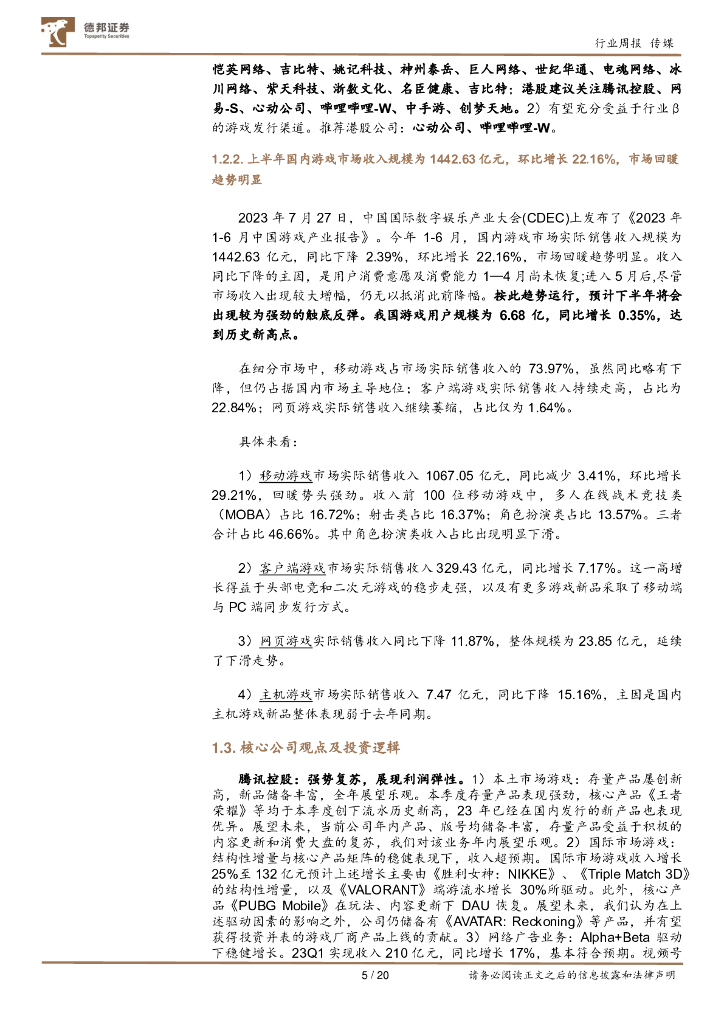 德邦证券:传媒互联网行业周报:7月游戏版号发布;上半年国内游戏市场回暖趋势明显.pdf