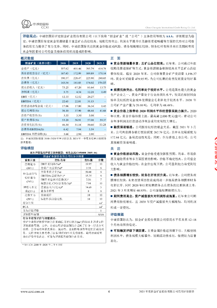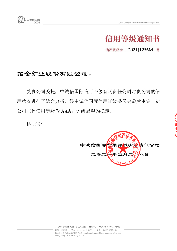 中诚信:招金矿业股份有限公司主体信用评级报告及跟踪评级安排.pdf