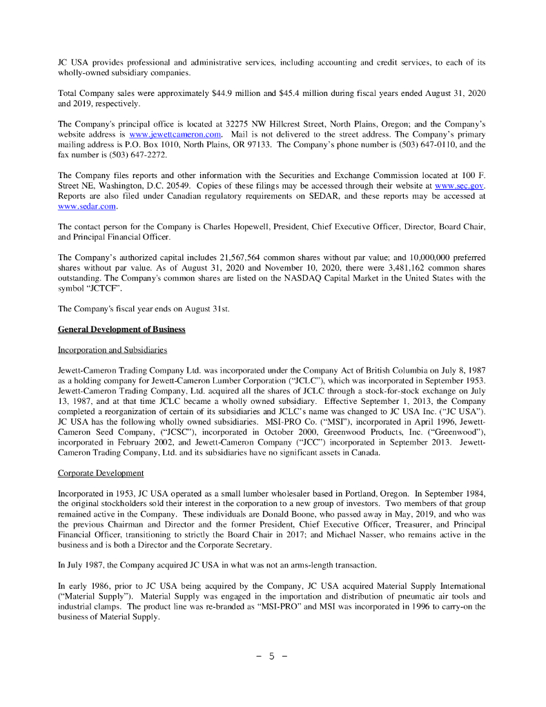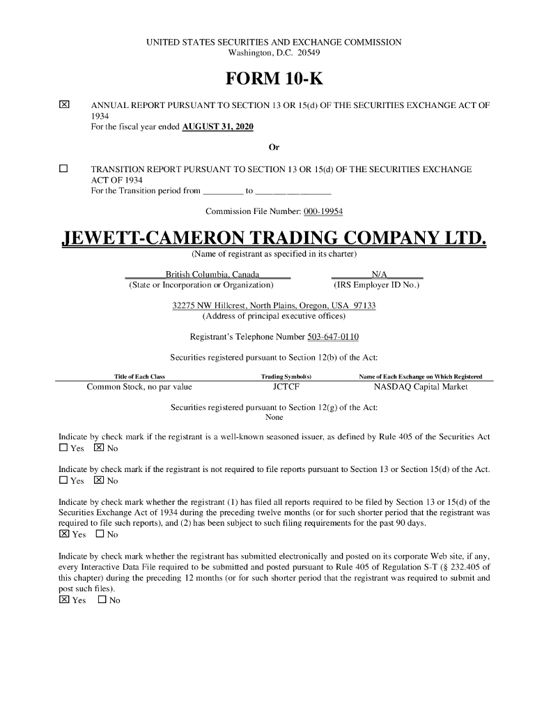 Jewett-Cameron Trading Company(JCTCF)2020财年年度报告(英文版).pdf