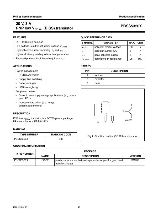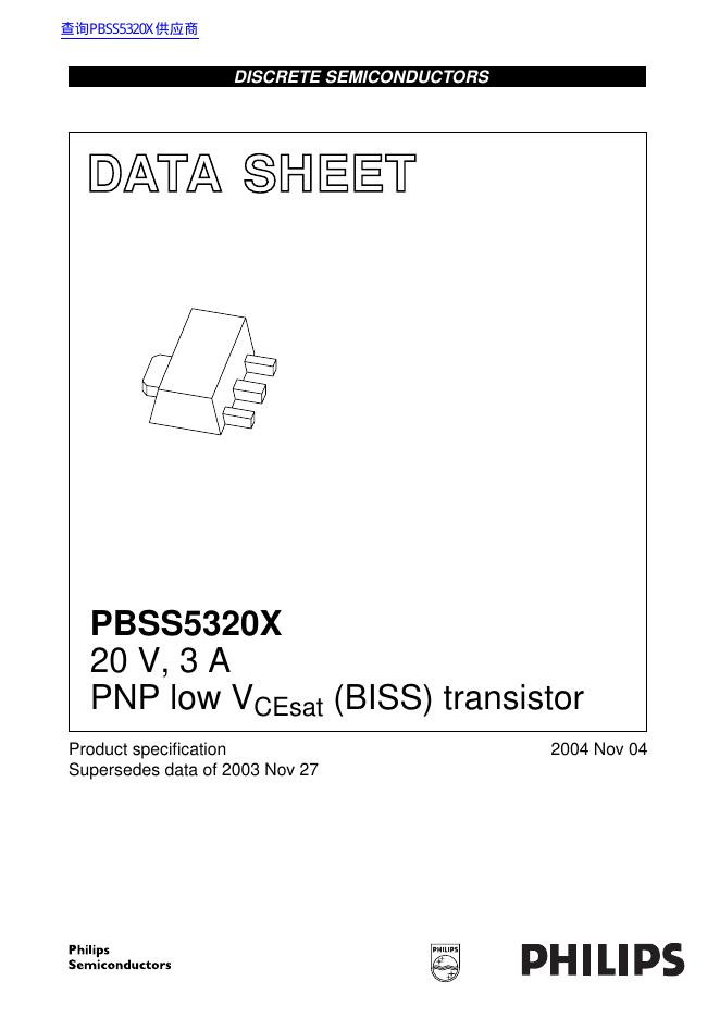philips PBSS5320X 20 V, 3 A PNP low VCEsat (BISS) transistor 数据手册.pdf