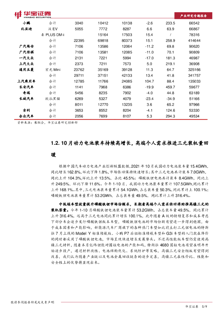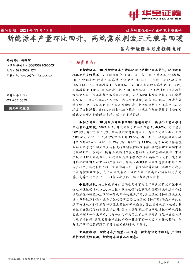 华宝证券:国内新能源车月度数据点评:新能源车产量环比回升,高端需求刺激三元装车回暖.pdf