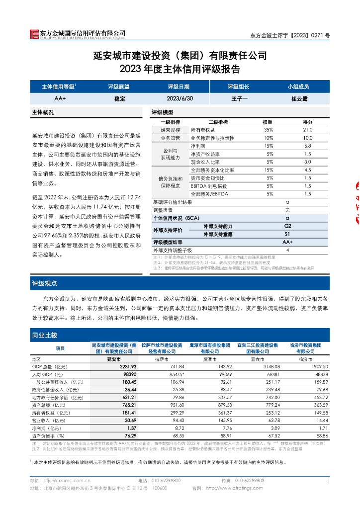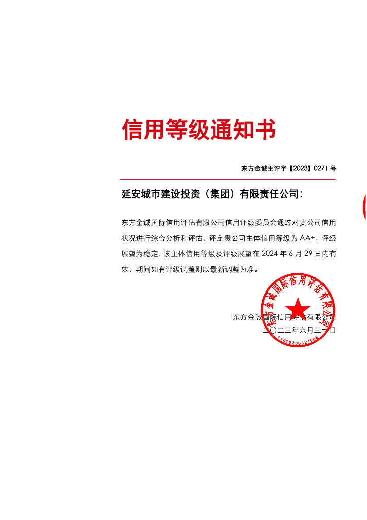 东方金诚:延安城市建设投资(集团)有限责任公司2023年主体信用评级报告.pdf