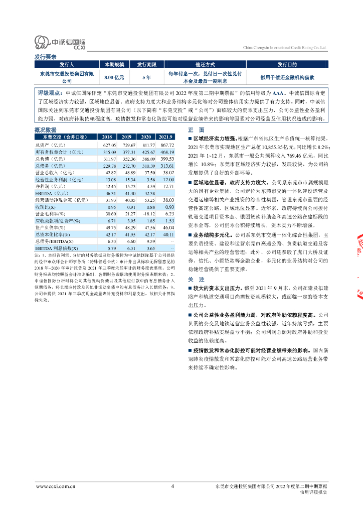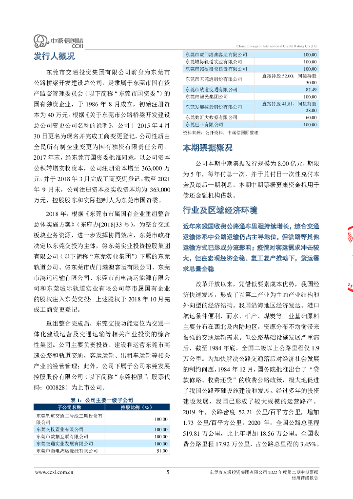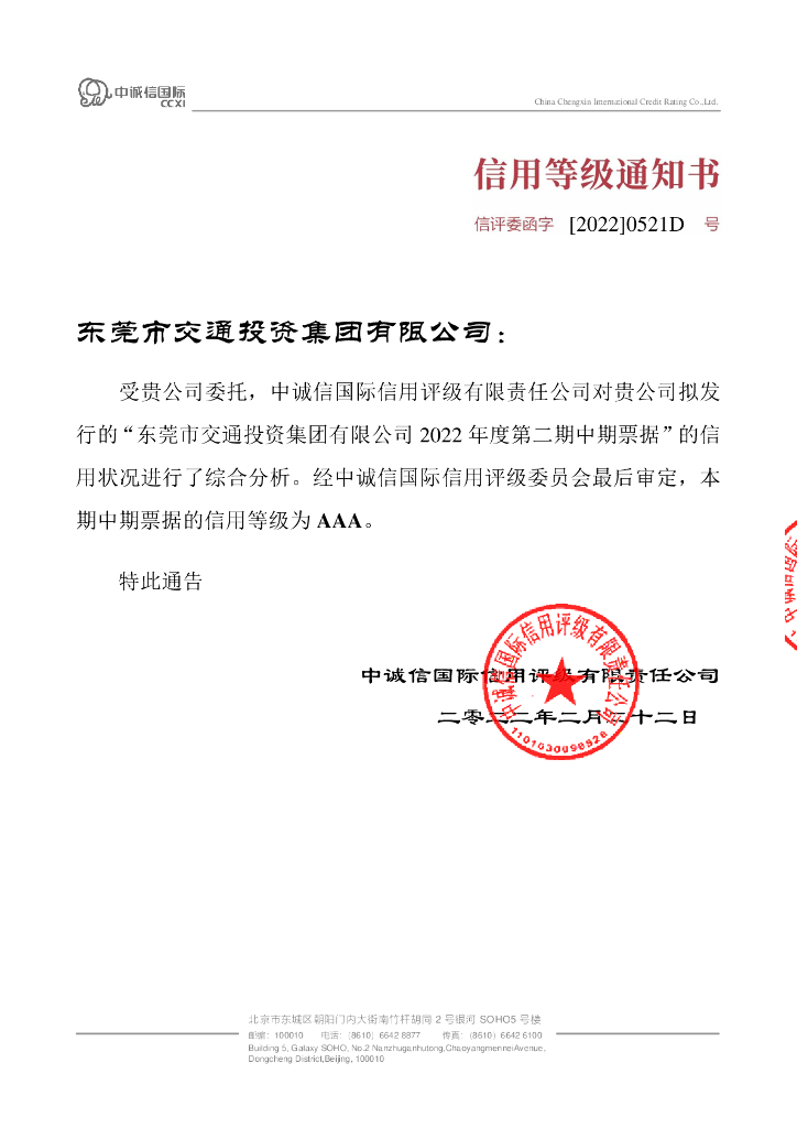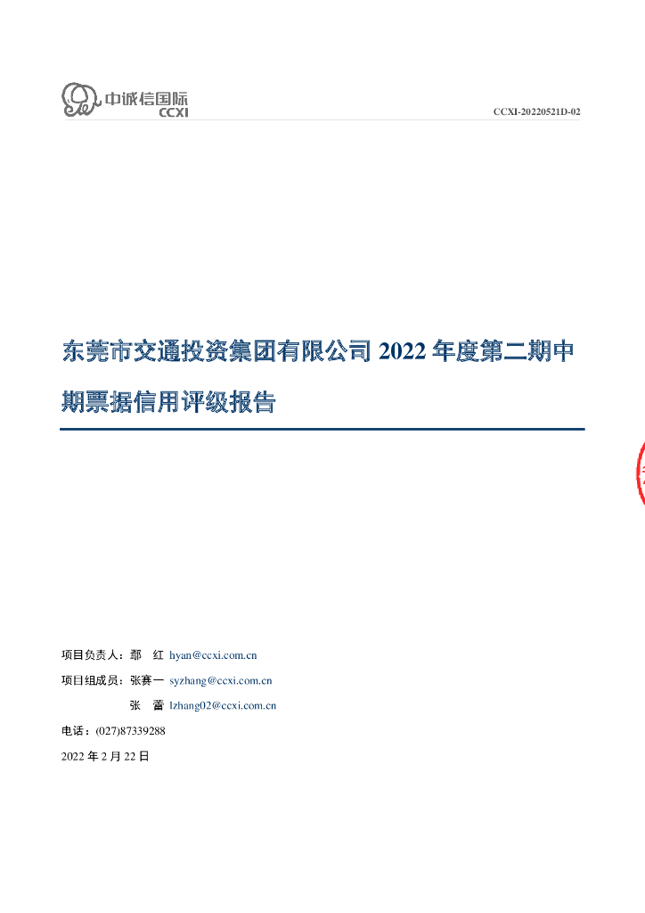 中诚信:东莞市交通投资集团有限公司2022年度第二期中期票据信用评级报告.pdf