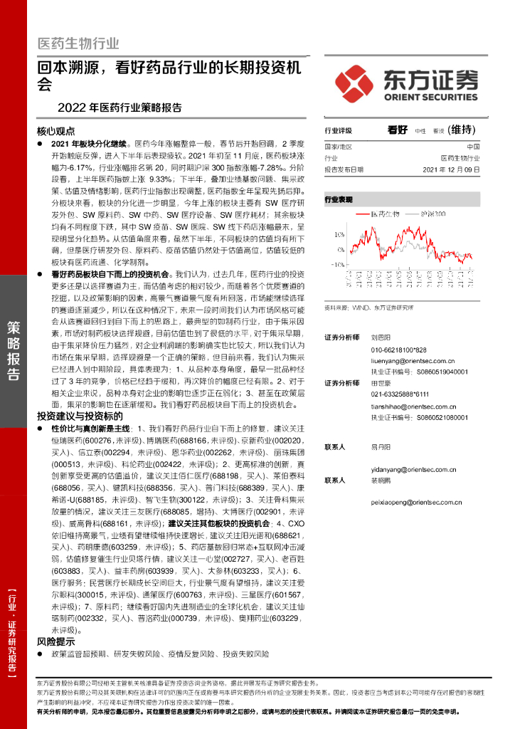 东方证券:2022年医药行业策略报告:回本溯源,看好药品行业的长期投资机会.pdf