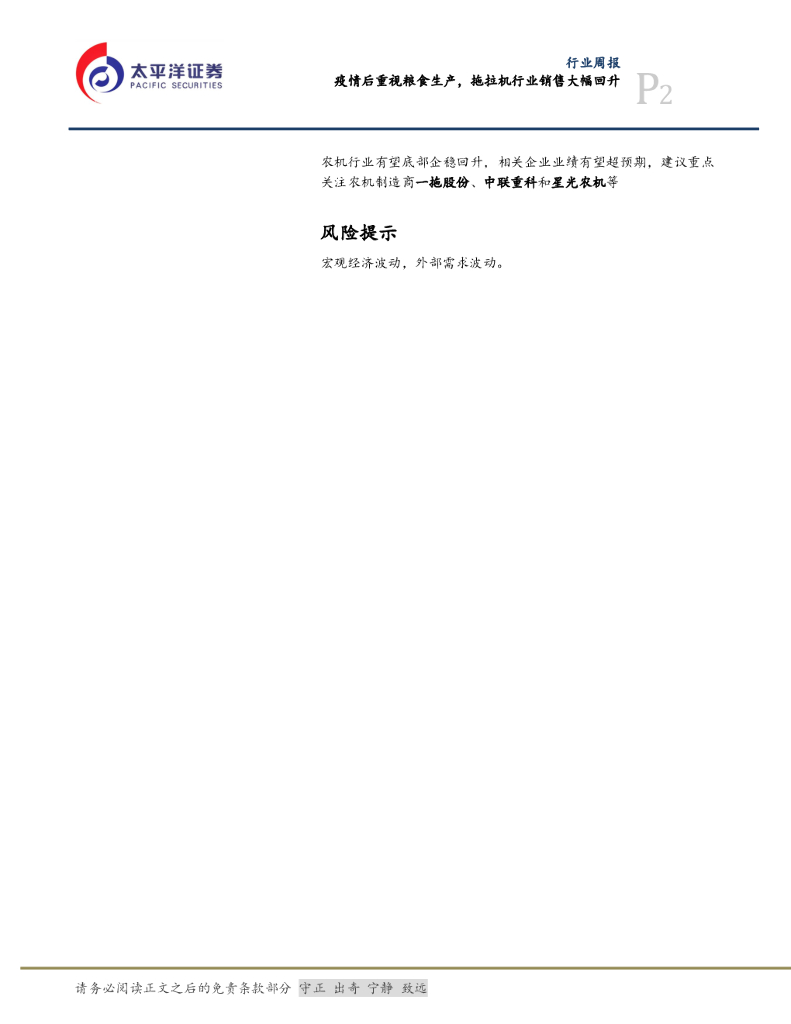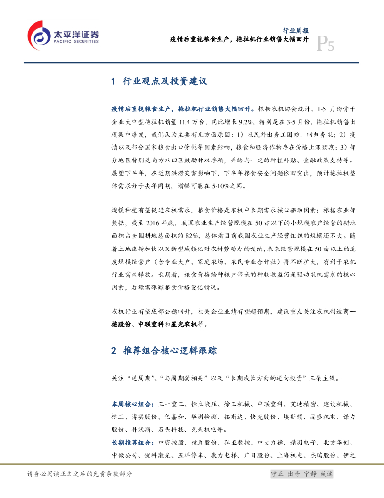 太平洋证券:机械行业周报:疫情后重视粮食生产,拖拉机行业销售大幅回升.pdf